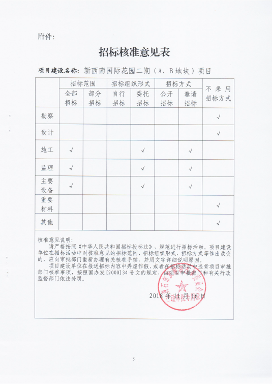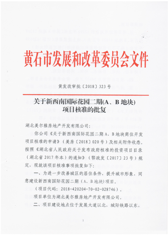 关于新西南国际花园二期(A、B地块)项目核准的批复