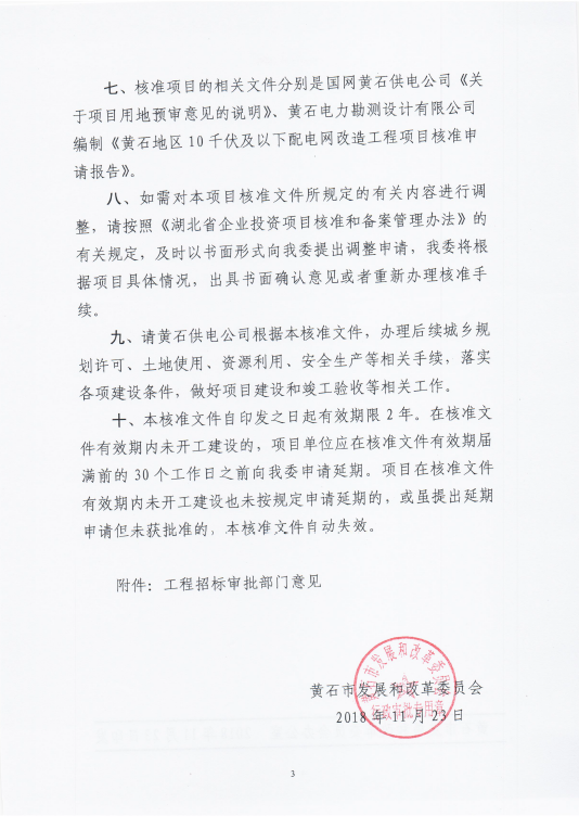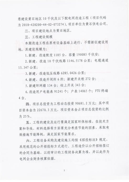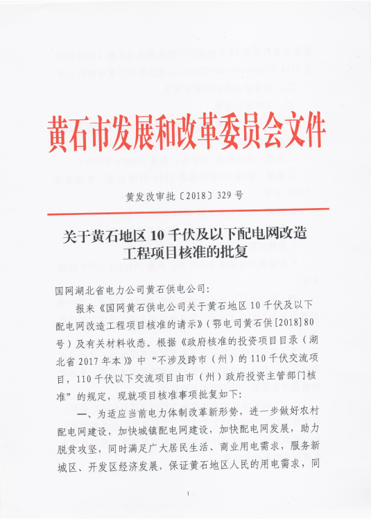 关于黄石地区10千伏及以下配电网改造工程项目核准的批复