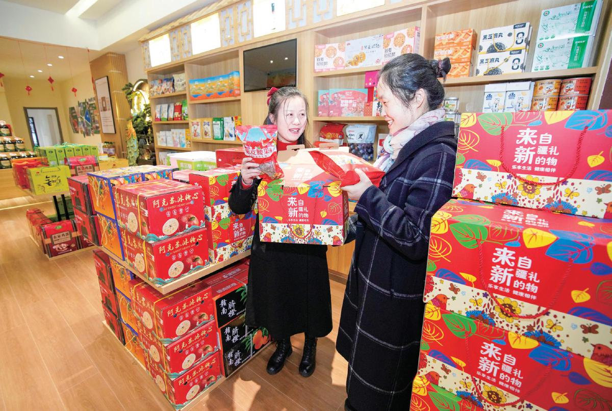 1月19日,位于大冶市的“湖北援疆”名优特产消费帮扶体验店内,来自新疆阿拉山口市的特色粮油、精河枸杞、优质干果等100多种新疆特产琳琅满目,让市民在家门口就能买到新疆美味。